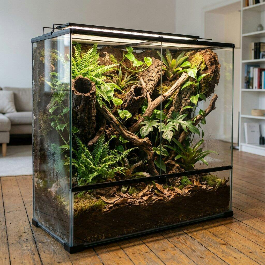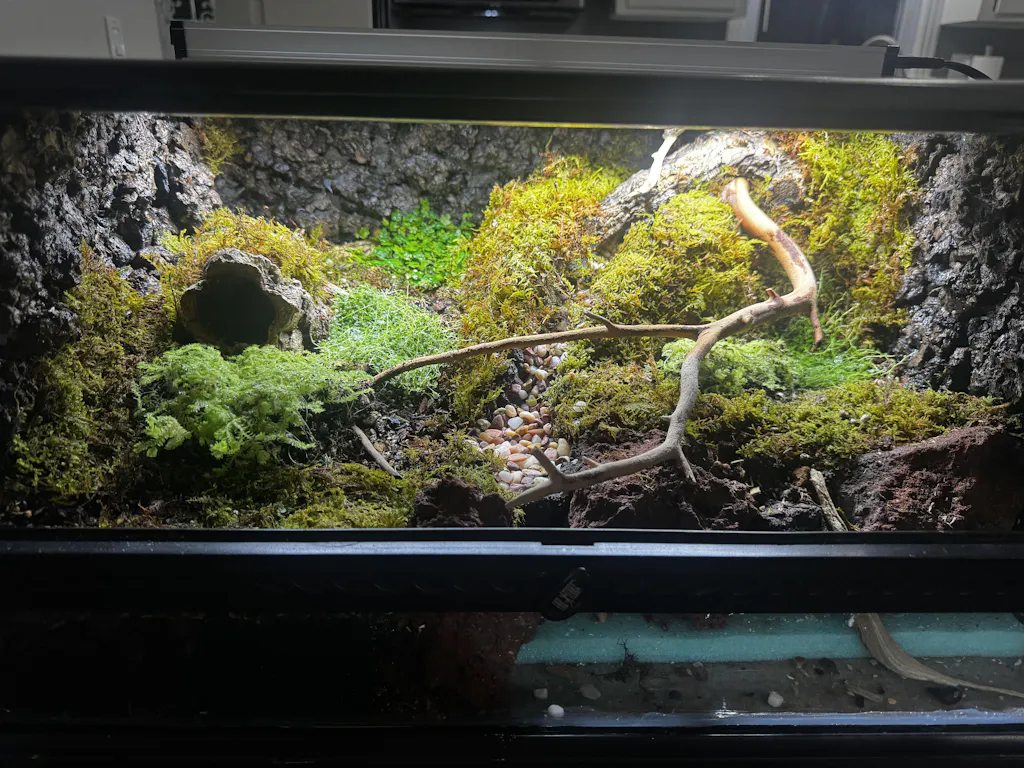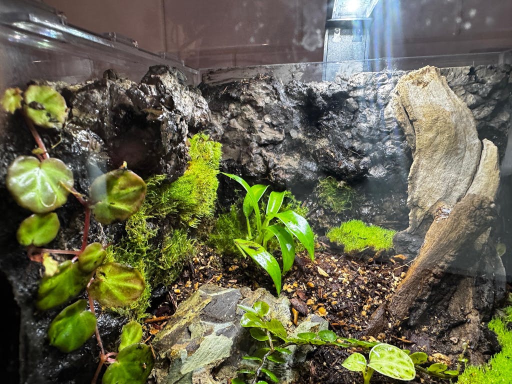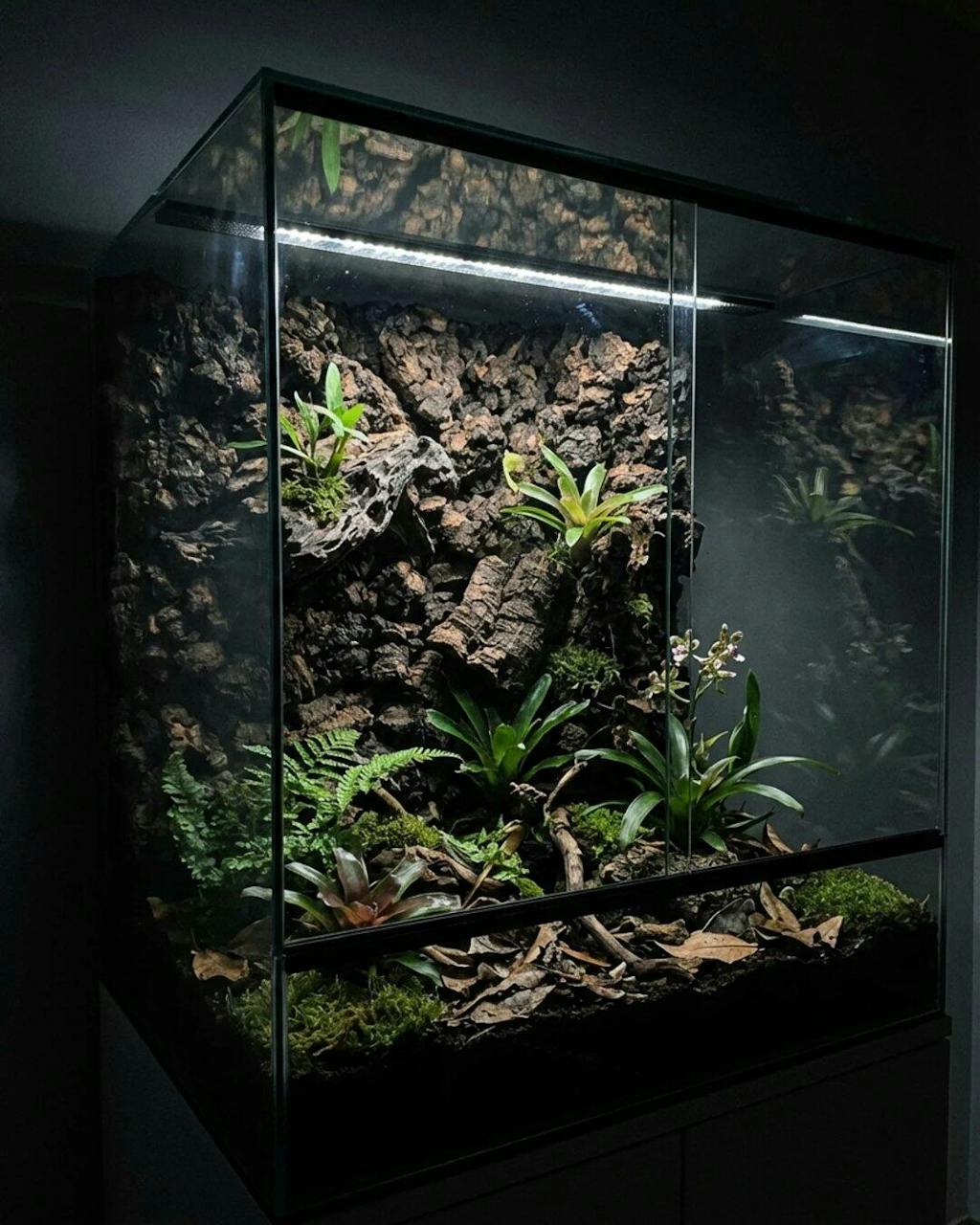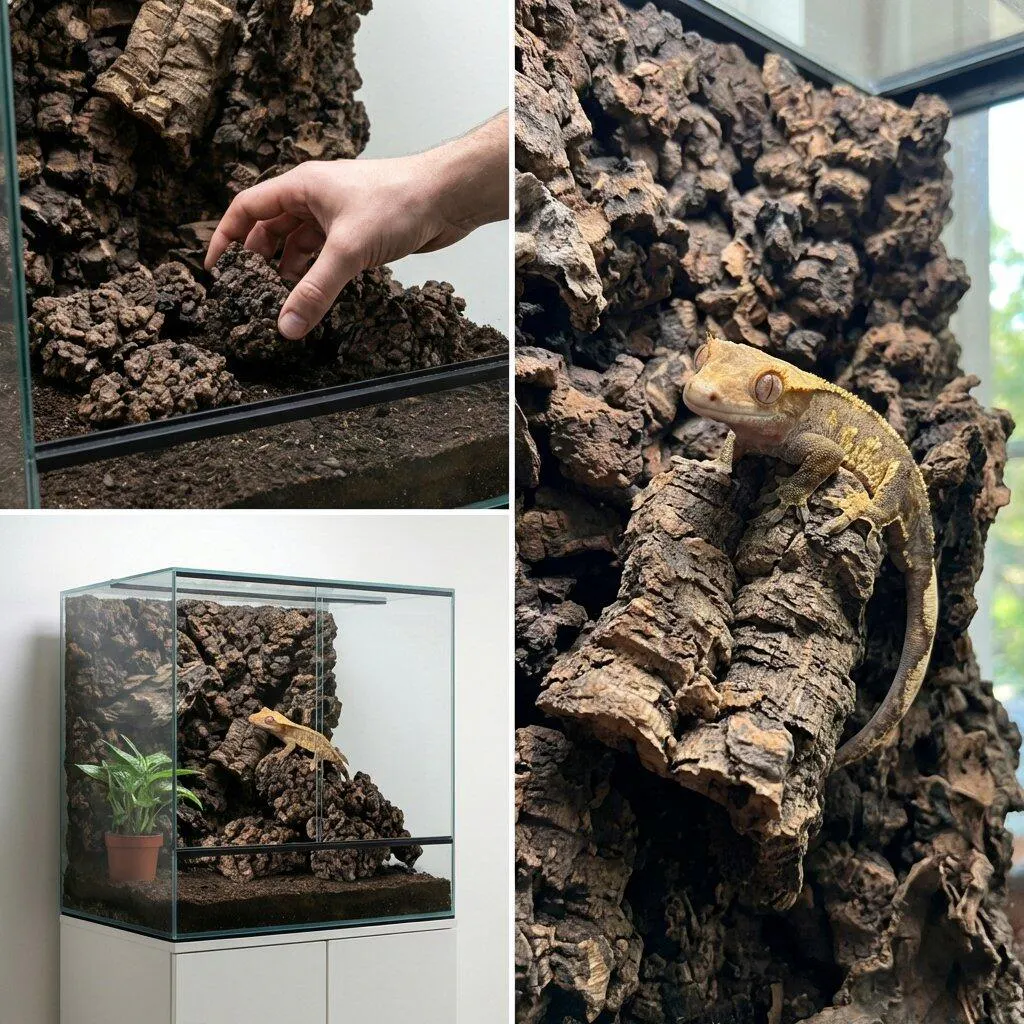 Yes. Carbonized cork is naturally water-resistant and won't break down in tropical enclosures the way raw foam or untreated wood will. The carbonization process makes it even more durable by increasing its resistance to moisture, rot, and decay. Builders have been running these backgrounds in high-humidity setups for months without any degradation. It absorbs some moisture and releases it slowly, which actually helps stabilize your humidity rather than fighting it.