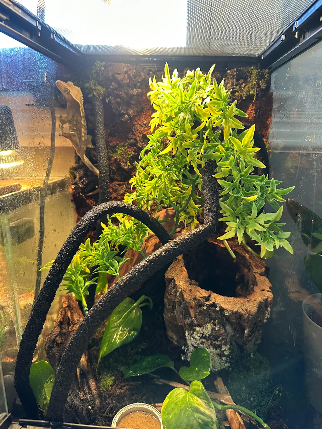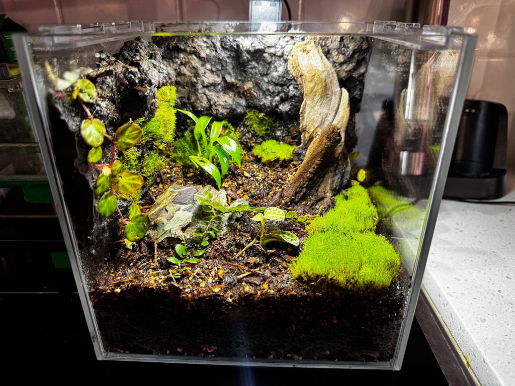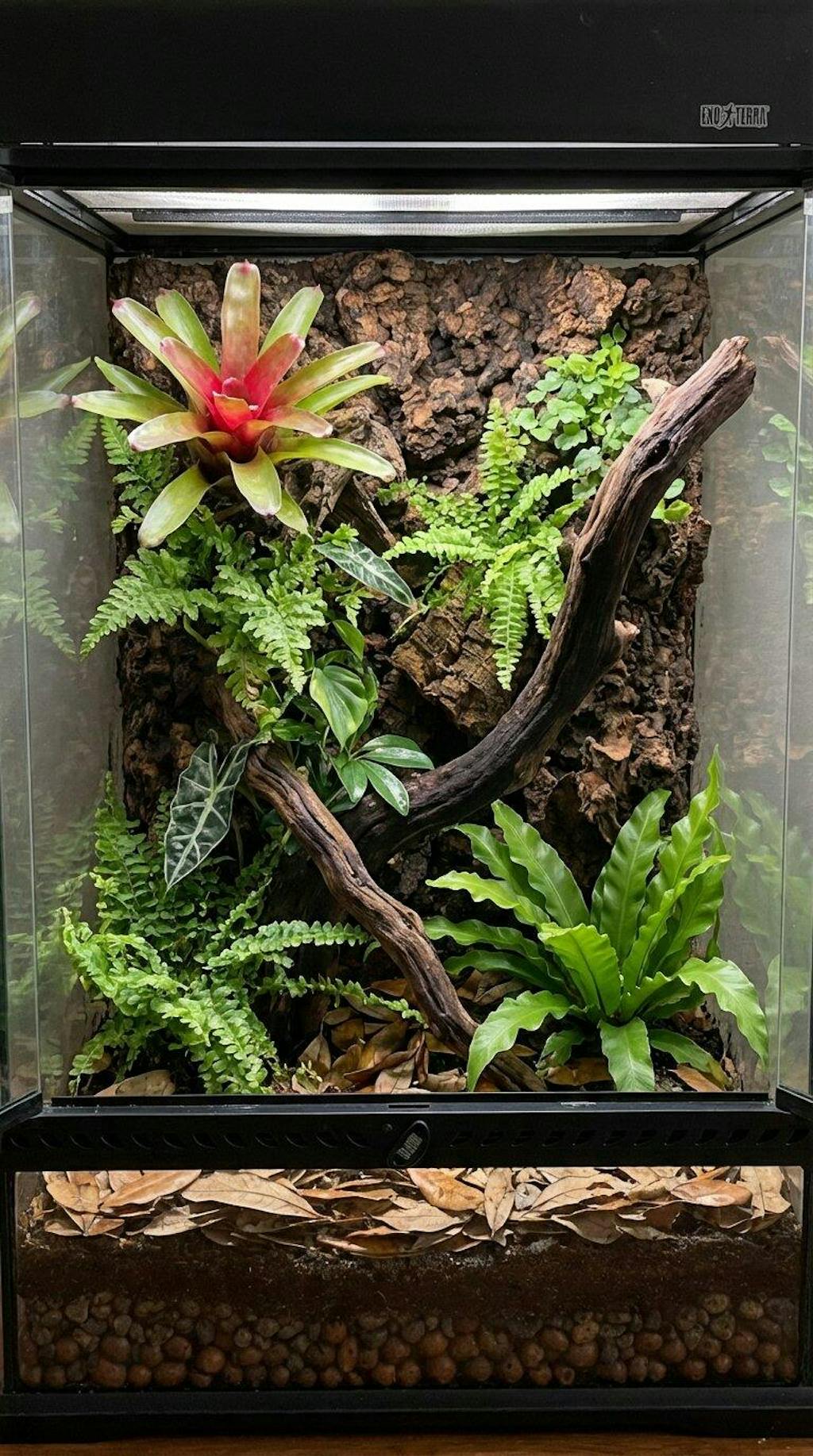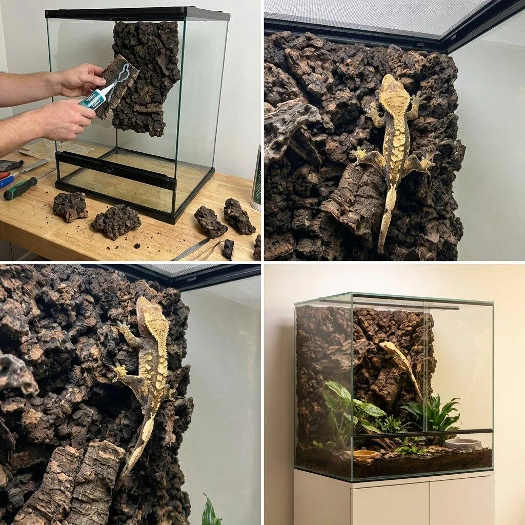 Yes. Carbonized cork is naturally water-resistant and won't break down in tropical enclosures the way raw foam or untreated wood will. The carbonization process makes it even more durable by increasing its resistance to moisture, rot, and decay. Builders have been running these backgrounds in high-humidity setups for months without any degradation. It absorbs some moisture and releases it slowly, which actually helps stabilize your humidity rather than fighting it.