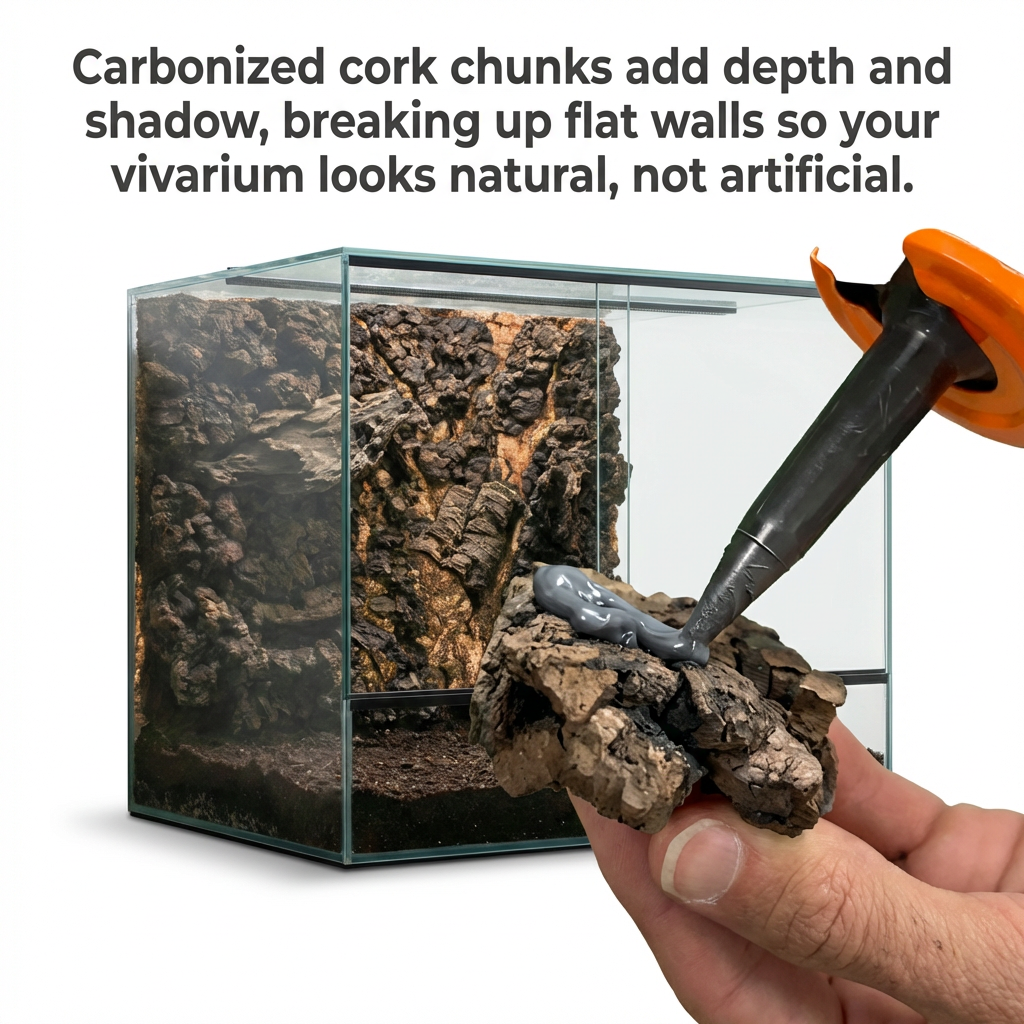 Since cork bark is a natural material, the sizes may vary. However, each 7oz bag typically covers an area of about 12x12 inches on a wall.