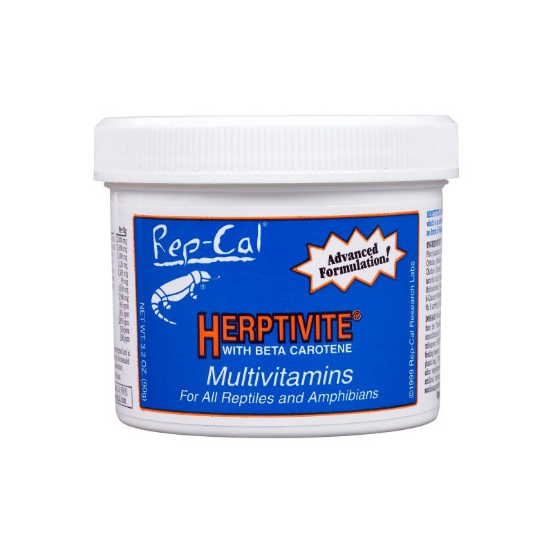 Herptivite is a complete reptile multivitamin and mineral supplement. It contains beta carotene, which is an antioxidant that is converted into vitamin A in a regulated way, so there's no danger of vitamin A toxicity. Herptivite's formulation contains all natural source ingredients with a base of "sea vegetation", which is rich in essential trace elements and minerals.