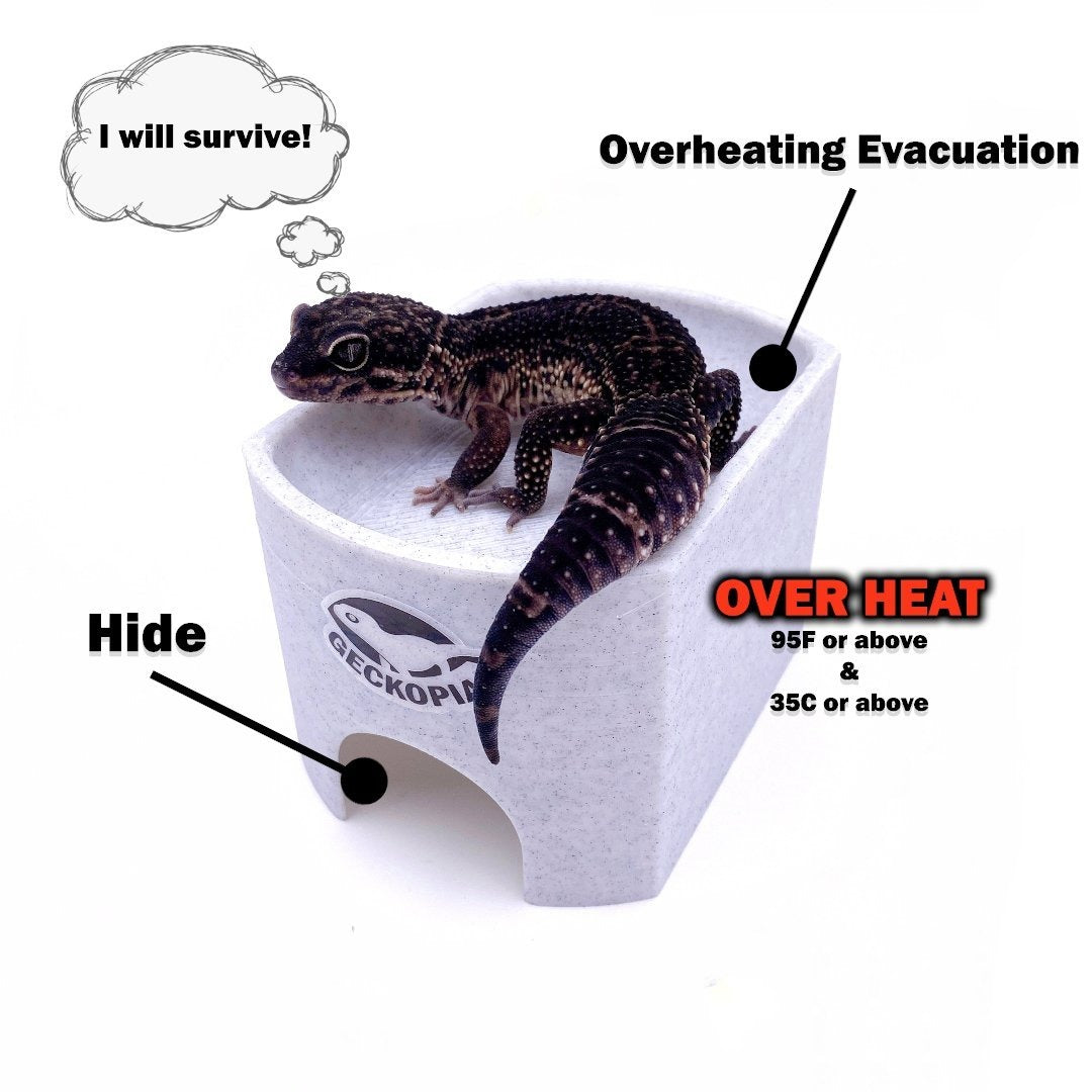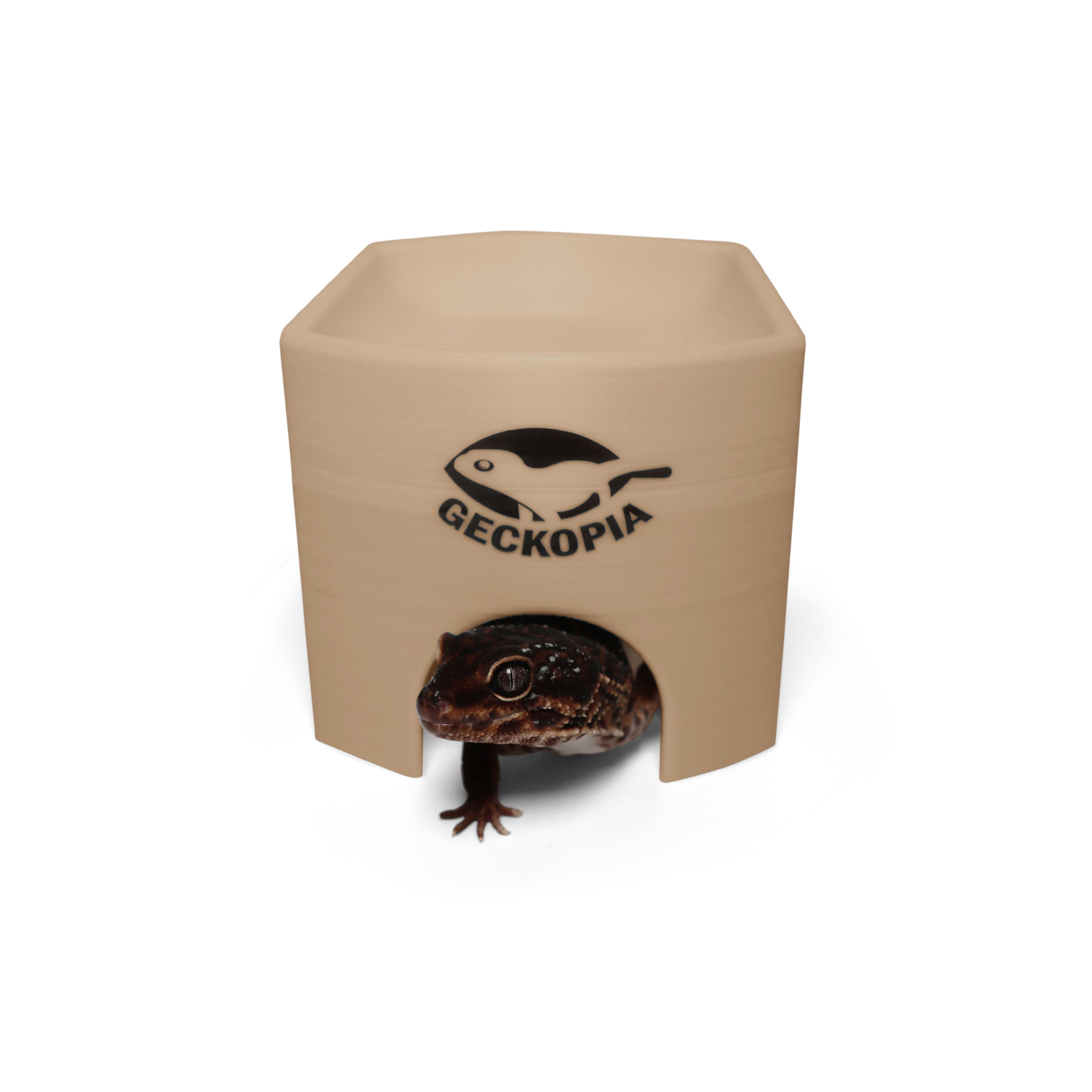 Safe Shelter - Leopard geckos are night predators in the wild, and they like to hide out during the day. Why stop them? Our “Gecko Place” is designed to give them comfort and concealment as they sleep and play.